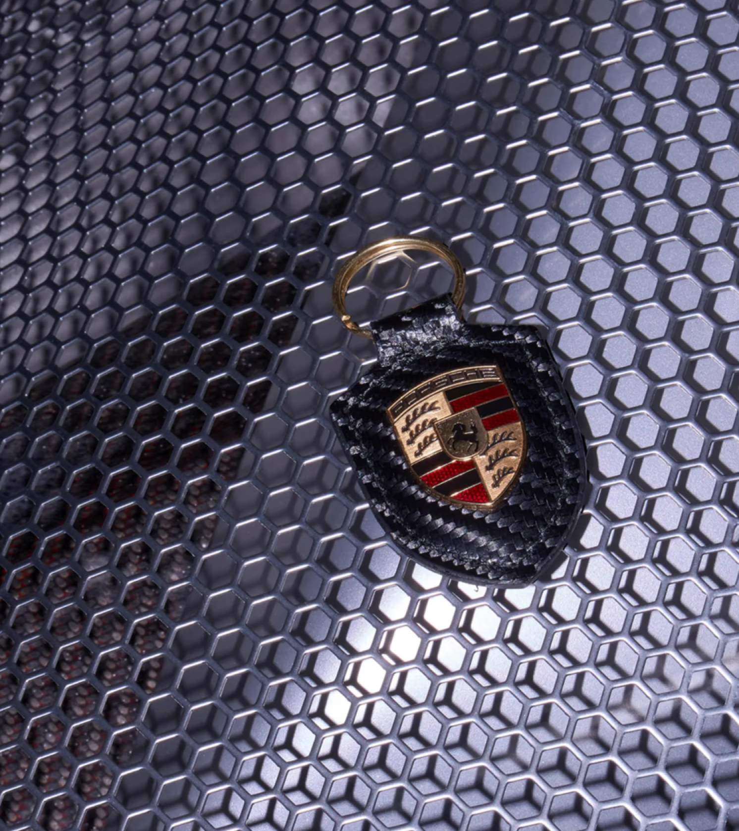 Įkvėptas Porsche Carrera GT salono anglies pluošto dizaino šis raktų pakabukas atrodo labai neįprastai. Ir tradiciškai Porsche herbas – kaip centrinis akcentas – suteikia subtilų, tačiau išraiškingą stiliaus prisilietimą.
